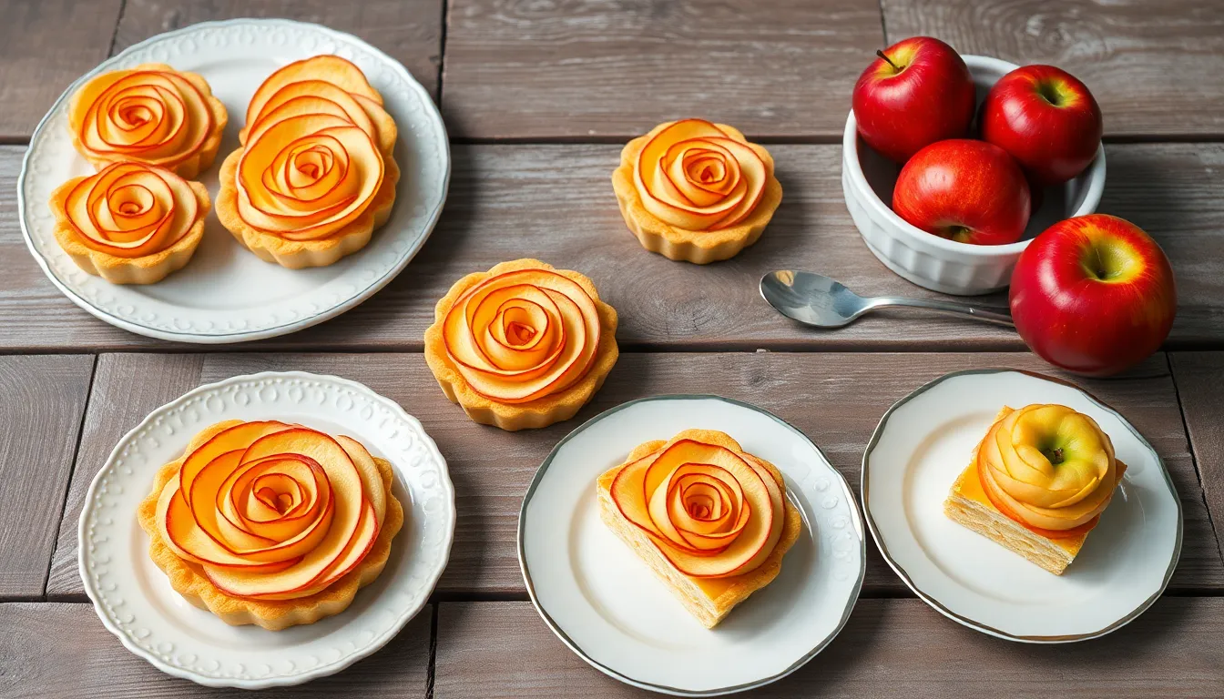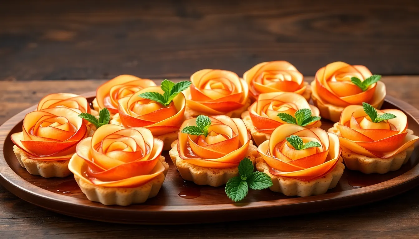 Apple rose tarts make an impressive centerpiece for special occasions like Mother’s Day brunches or holiday gatherings. Arrange them on a decorative cake stand at varying heights for maximum visual impact.