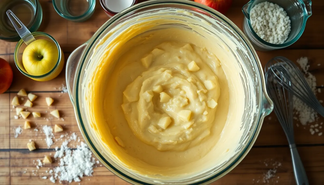Gently fold in your prepared apple mixture using a rubber spatula with a light hand. This folding technique preserves the air bubbles in the batter while ensuring the apples are evenly distributed.