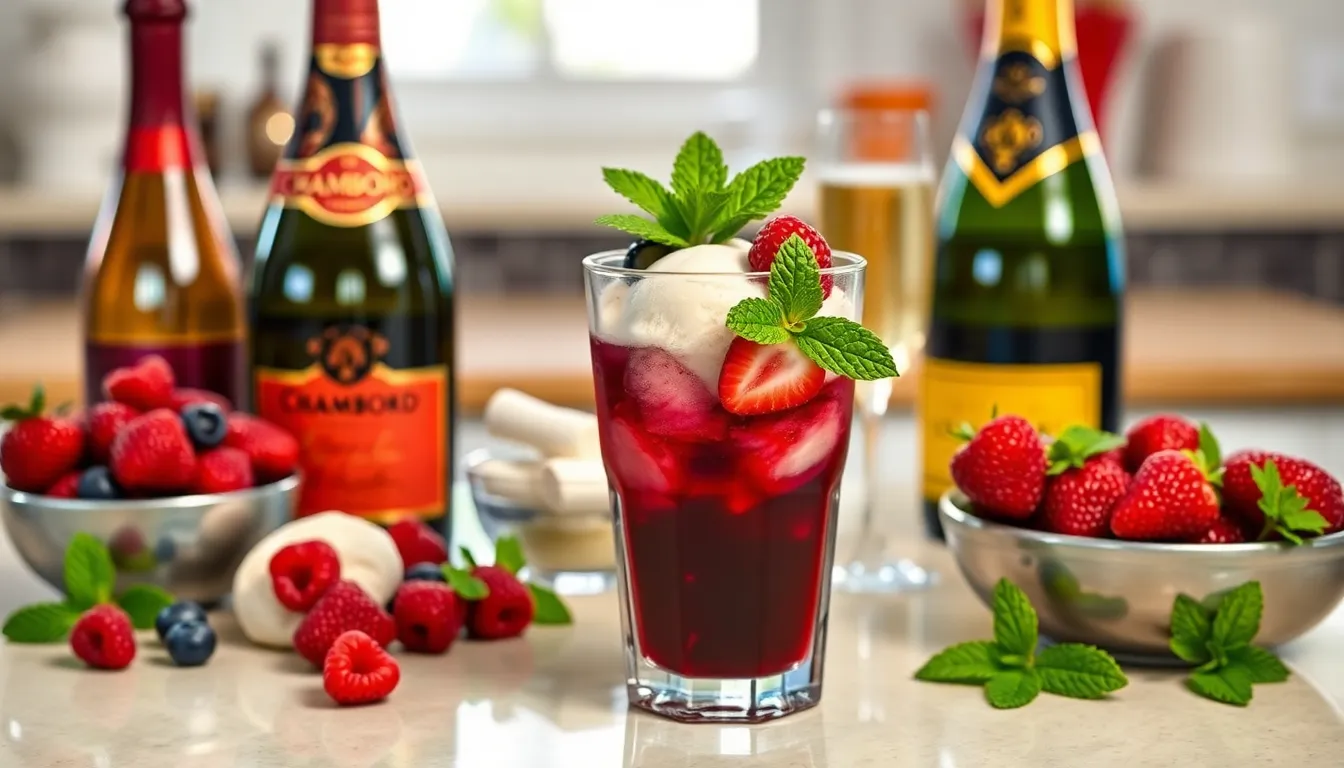 Amplify the berry notes in your Chambord float by creating a berry-forward variation that celebrates summer’s bounty. Begin with a berry-rippled ice cream or raspberry sorbet for a more intense fruit flavor. Muddle fresh raspberries, blackberries, and strawberries in the bottom of your glass to release their juices before adding the ice cream. Pour in your Chambord as usual, but consider adding a splash of berry-infused vodka for an extra kick. Top with sparkling rosé instead of traditional sparkling wine for a blush-colored finish that enhances the berry theme. Garnish with a skewer of fresh berries and a sprig of basil or mint to elevate the aromatic experience. This variation highlights the natural berry essence of Chambord while introducing complementary fruit flavors for a refreshing summer treat.