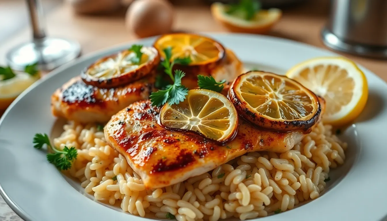 Create textural contrast throughout the dish. The tender chicken pairs beautifully with the slight chew of properly cooked orzo. Caramelized lemon slices add both visual appeal and intense flavor bursts when incorporated as a garnish.