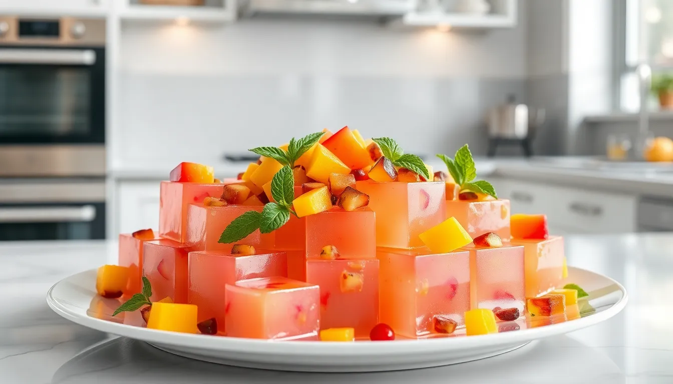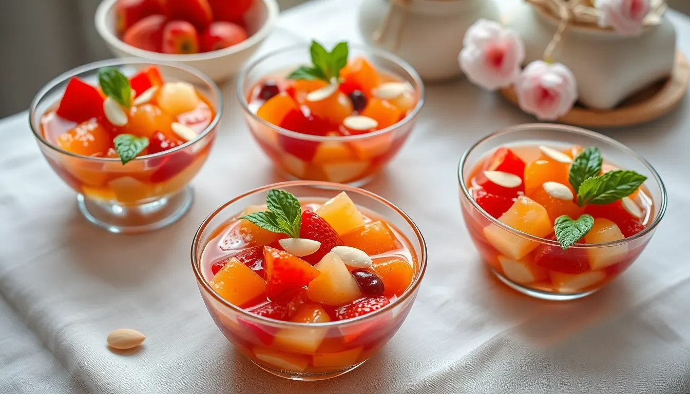 Toppings contribute essential freshness and visual appeal to your Chinese jello. Traditional Chinese restaurants typically serve this dessert with canned fruits, particularly fruit cocktail or mandarin oranges, which add vibrant color and complementary sweetness. The fruit syrup from canned fruits doubles as a light sauce that pools beautifully around the jello cubes.