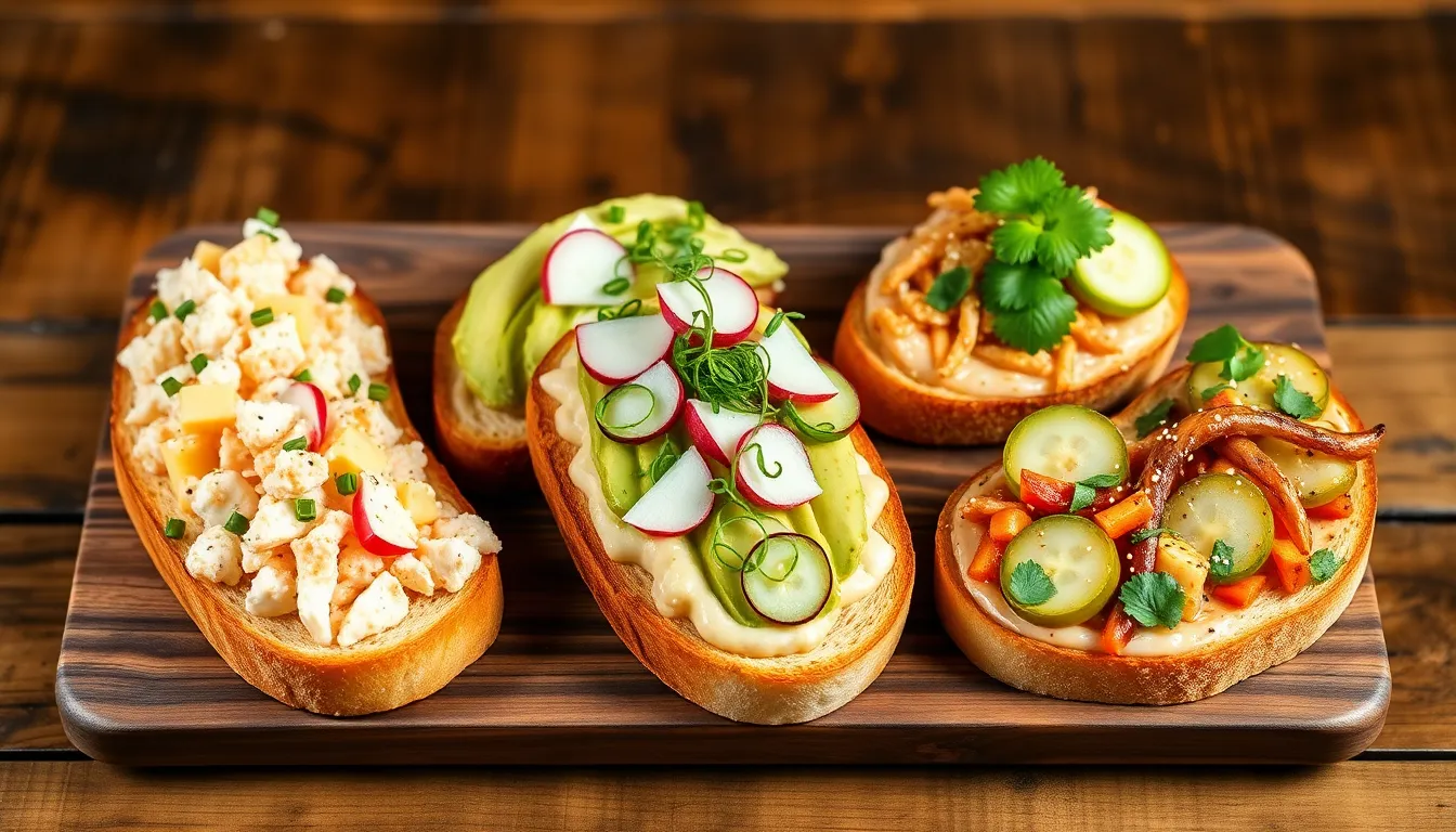 Create a luxurious fusion by combining creamy avocado with sweet crab meat for an indulgent treat. Begin by mashing 2 ripe avocados with 1 tablespoon of fresh lime juice, salt, and pepper. Spread this avocado base onto your toasted bread slices (sourdough works particularly well here). In a separate bowl, gently combine 8 ounces of lump crab meat with 2 tablespoons of chopped fresh cilantro, 1 tablespoon of lime juice, and a light drizzle of olive oil. Season with salt and pepper to taste, being careful not to break up the delicate crab chunks. Spoon this bright crab mixture over the avocado layer and finish with thinly sliced radishes for crunch, microgreens for color, and a light sprinkle of red pepper flakes for subtle heat. The buttery texture of avocado creates a perfect backdrop for the sweet crab without overpowering its delicate flavor.