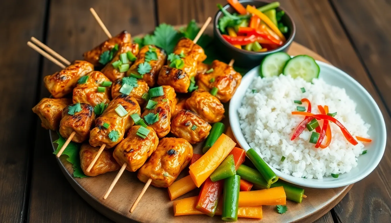 With Rice: Serve your skewers over a bed of steamed jasmine rice to balance the bold flavors of the chicken. Rice acts as the perfect foundation for soaking up the delicious glaze and provides a satisfying base for your meal.