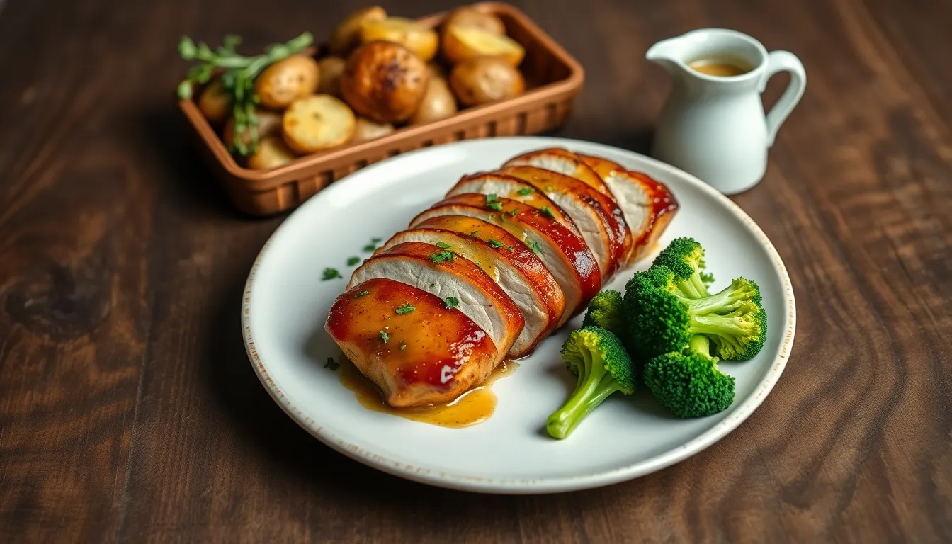 The sweetness from brown sugar or honey balances the spiciness creating a complex flavor profile that’s both warming and satisfying. Apply the glaze as in the original recipe then sear and roast according to the standard instructions. This spicy version makes an excellent centerpiece for a dinner with robust side dishes like garlic mashed potatoes or braised greens.