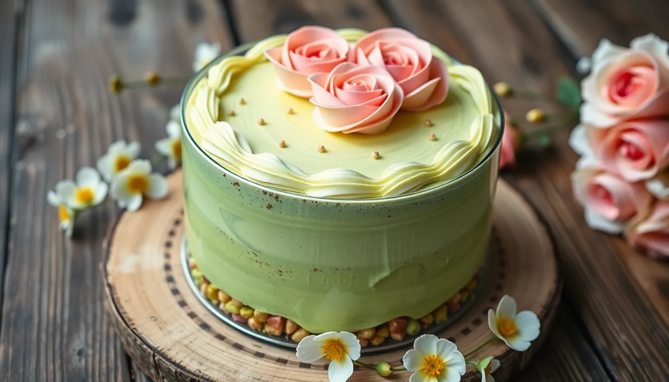 Reimagine the presentation of these flavors in different cake formats. Bake the batter in a loaf pan for a pistachio rose tea cake that’s perfect for everyday enjoyment. Transform the recipe into cupcakes (bake for 18-22 minutes) and pipe rose frosting in decorative swirls topped with a single pistachio and rose petal. Create a layer cake with alternating flavors by making one layer pistachio and another layer with rose-infused batter. Convert to a bundt cake format with a simple rose glaze drizzled over the top and crushed pistachios sprinkled in the creases.