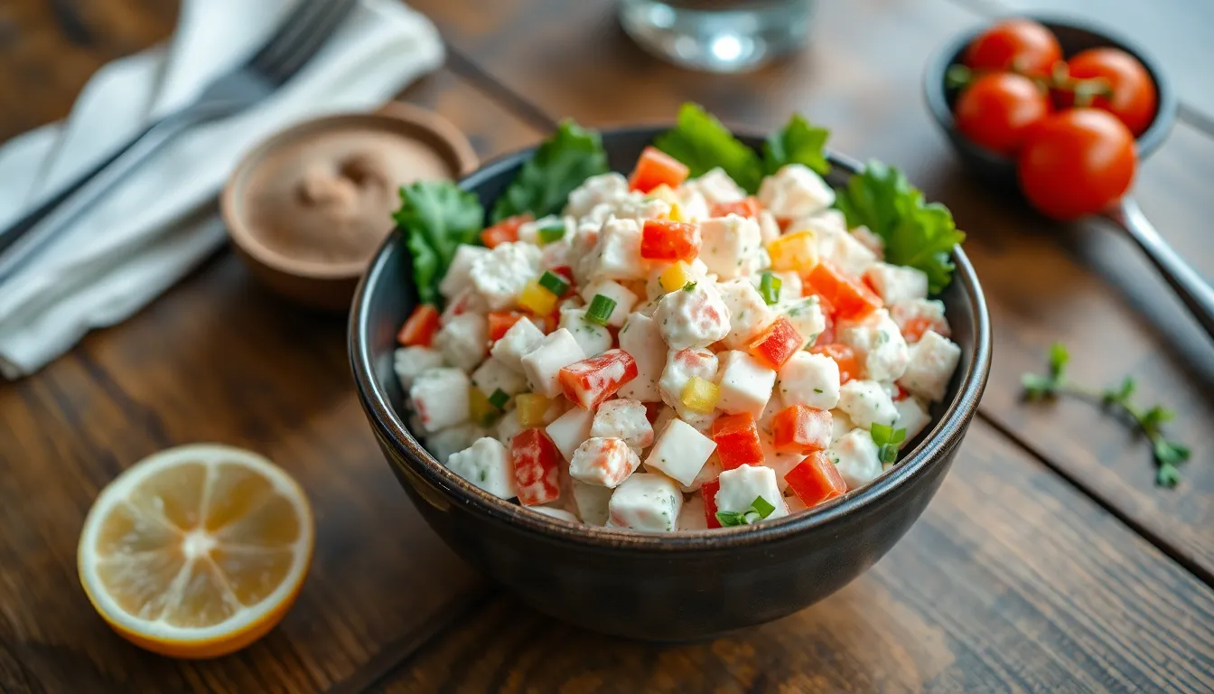 Balance the mayonnaise with sour cream for a less heavy but still creamy dressing. Add a splash of fresh lemon juice to brighten the flavors and cut through the richness. Season the salad gradually, tasting as you go—remember that imitation crab and mayonnaise already contain salt. Let the salad rest in the refrigerator for at least 2 hours before serving to allow flavors to fully develop and meld together. Overnight refrigeration yields the most flavorful results.