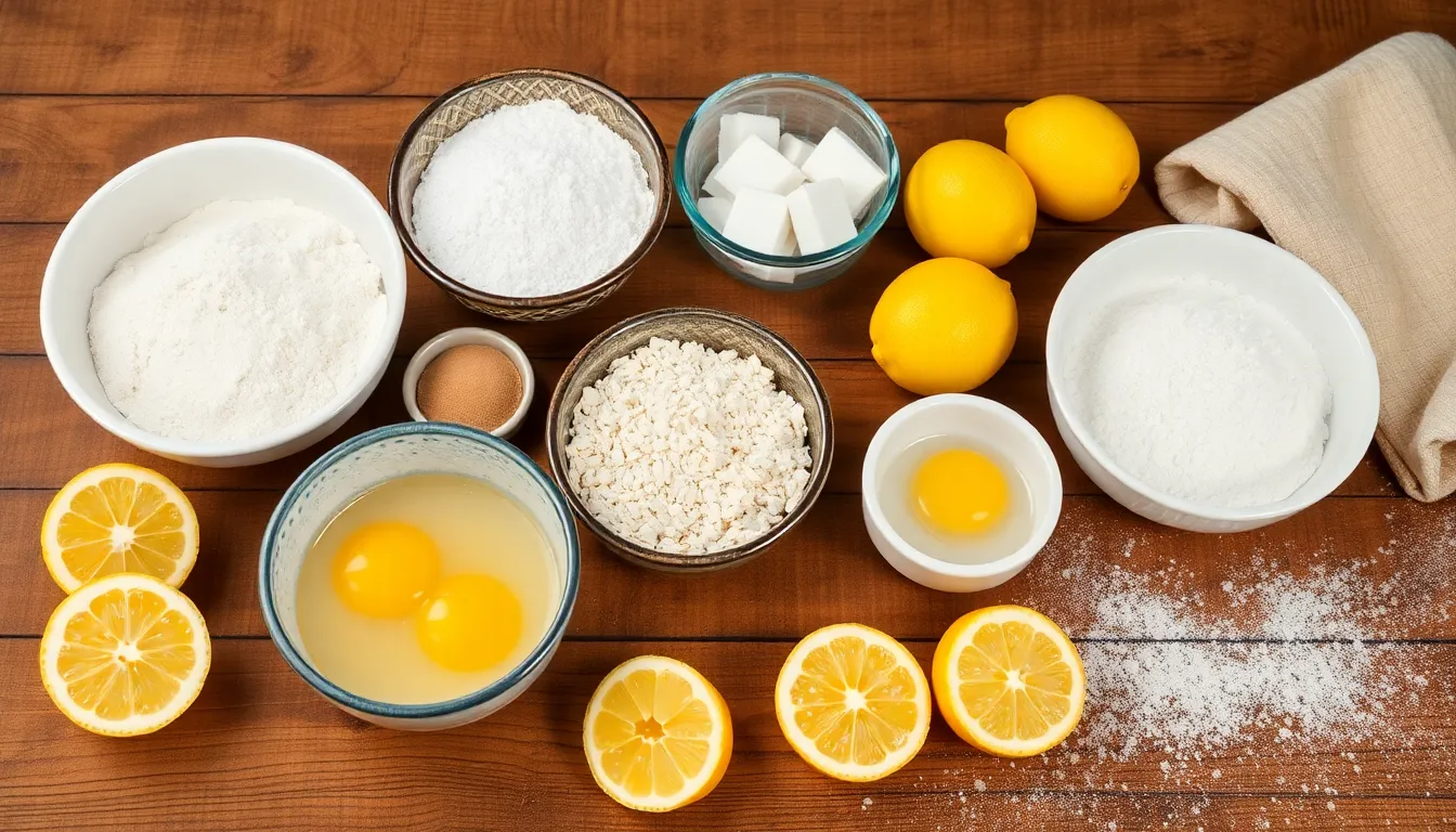- Gather your ingredients: 4 cups all-purpose flour, ¾ to 1⅓ cups granulated sugar, 1-2 tablespoons baking powder, 1-2½ sticks softened unsalted butter, 2 whole eggs plus additional yolks, zest from 1 lemon, a pinch of salt, and 2-4 tablespoons milk.
